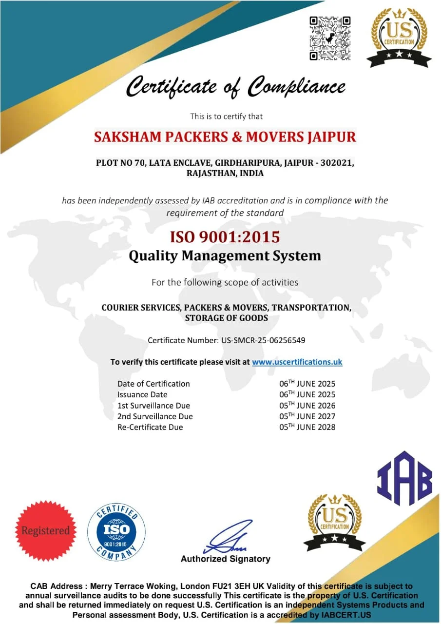 Welcome To Saksham Packers & Movers, ISO certified trusted name in the packing and moving industry since 2015, offering reliable and affordable relocation solutions in Jaipur. Whether you're planning a home relocation, office shifting, vehicle transport, or international cargo movement, we provide end-to-end packing and moving services in Jaipur to make your journey stress-free and smooth.